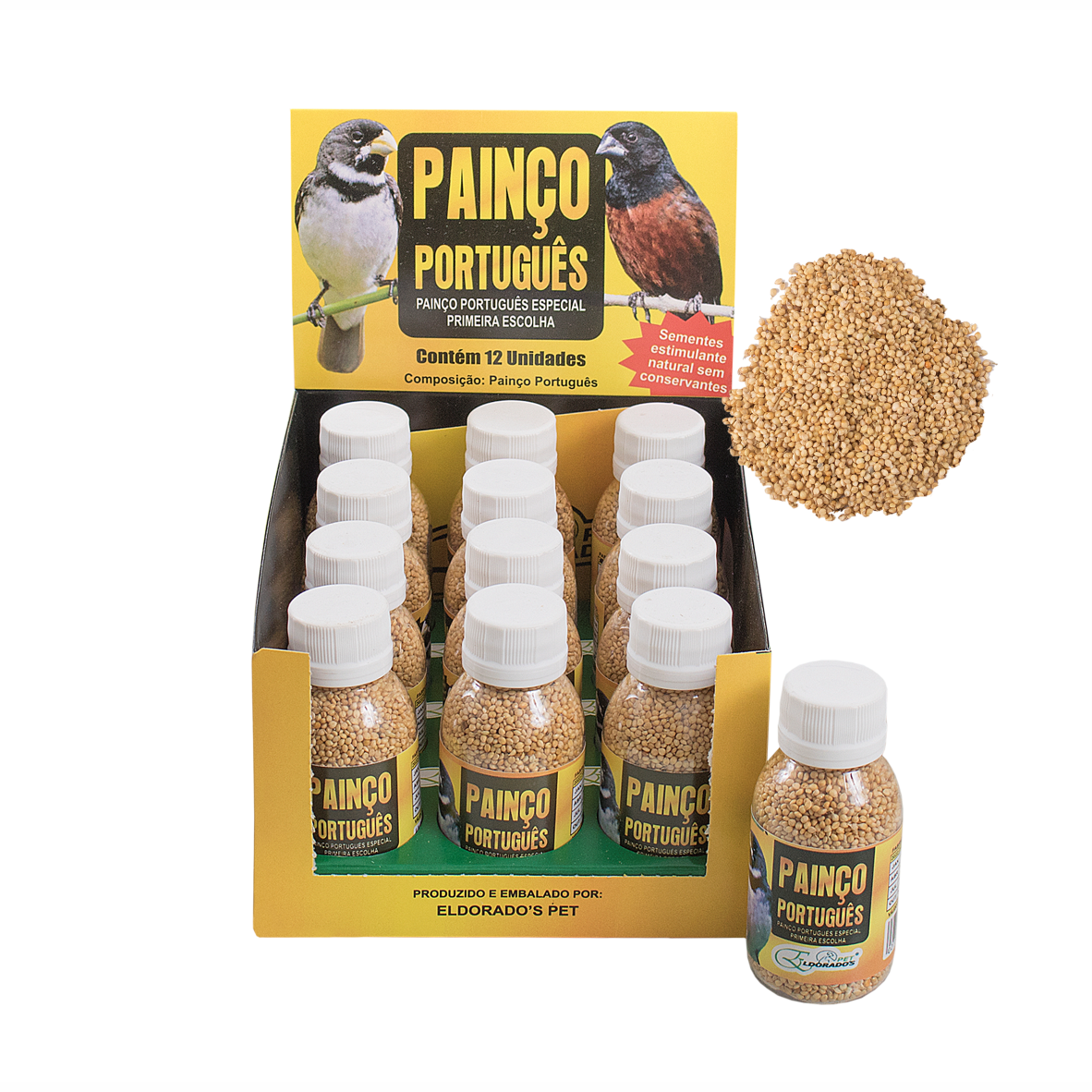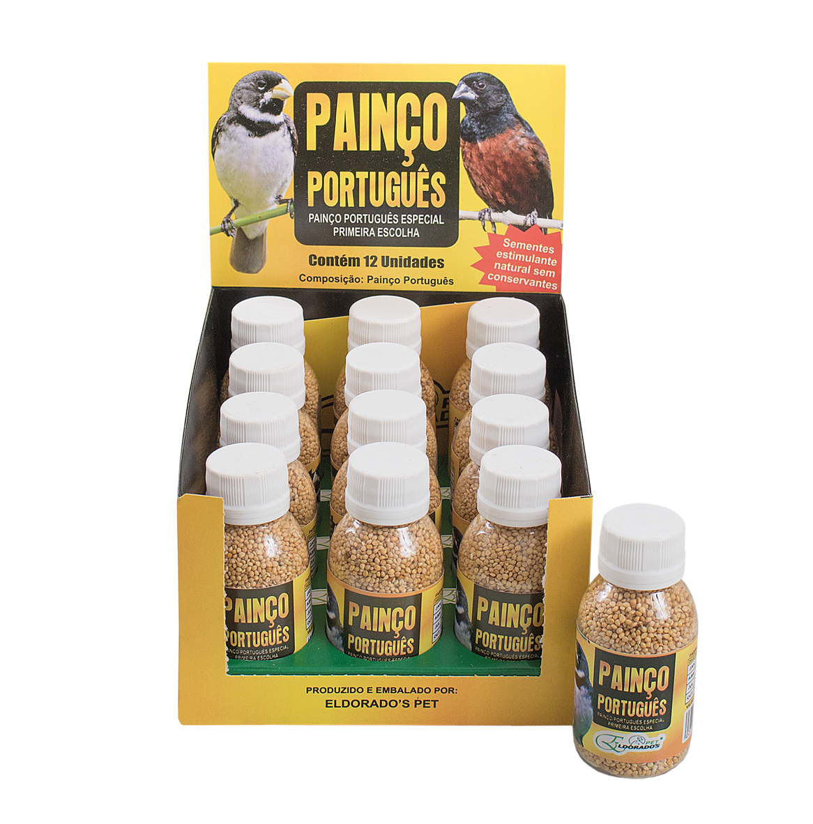 Descrição do Produto: Painço Português para espécies como Curió, Coleiro, Bicudo, Azulão e similares.